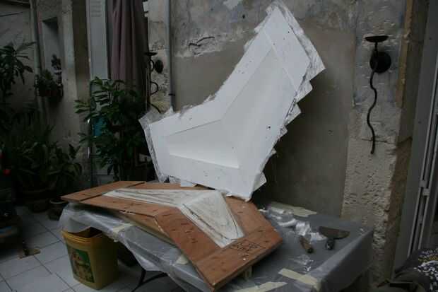 Retire el modelo de su marco, quitar la silicona y poner en su molde-cama (como una momia en su sarcófago).