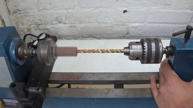 La segunda etapa es perforar la madera en blanco. Lo hice en el torno, pero si tienes un taladro lo suficientemente grande puede utilizar eso también.