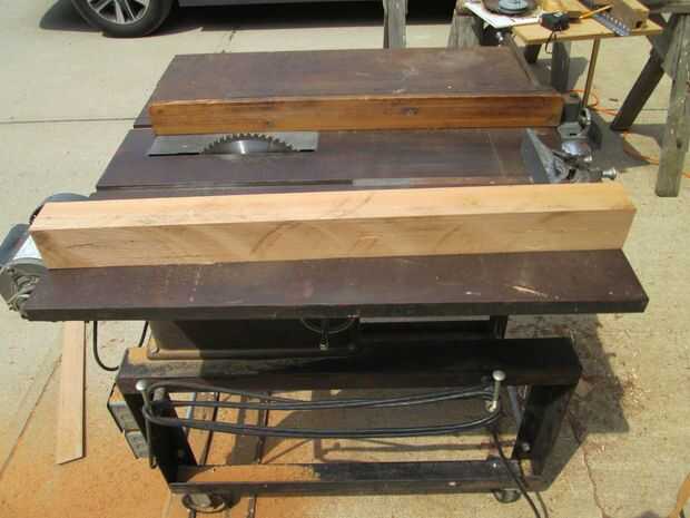 Empezar por encontrar una pieza de madera adecuada para la luminaria. Debe ser tan largo como su mesa de la sierra y aproximadamente 2 1/2 "x 3". Tenía un trozo de roble recortan a la medida.