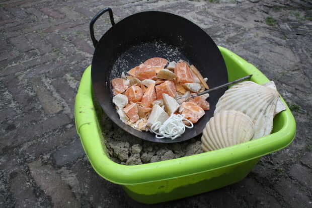 -un recipiente lleno de arena húmeda