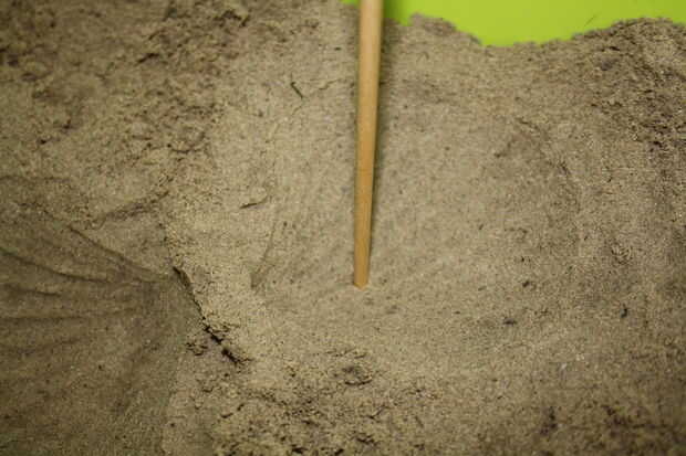 Cortar un trozo de mecha (Asegúrese de que no es poco!, consulte el paso siguiente para un ejemplo de cuánto debe ser la mecha) y meter en el agujero que acaba de hacer, use un poco de arena para cerrar el agujero, si utiliza para tanto será visible cuando la vela se realiza.