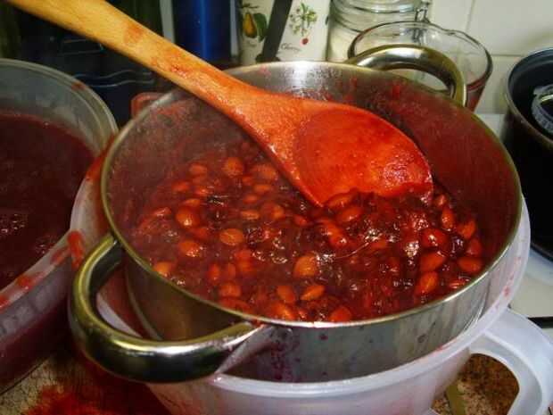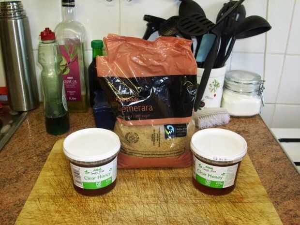 Remojo los arándanos en el vinagre durante 24 horas. Guardar la base de vinagre, escurrir los arándanos y colocar en una cacerola grande. Medir 250 ml de vinagre guardado y verter sobre los arándanos. Encender la calefacción, calentar que hierva y reducir los arándanos; Esto puede tardar hasta 15-20 minutos o así sucesivamente la ebullición. Colar el Damson pieles y piedras del licor y tírelos. Volver el licor al calor, llevar a ebullición y agregue el vinagre, miel y el azúcar restante, llevar a ebullición, baje hasta un balanceo hervir y reducir a 1/4. Botella en botellas de cristal esterilizada y la tapa.