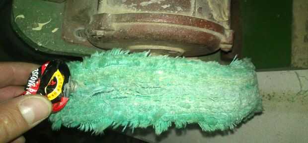 Recomiendo mucha precaución, si la hoja cogió la hoja, es capaz de otorgar una velocidad relativamente alta y por el momento no es muy buen soporte en la trayectoria de la hoja. Durante el pulido, la pasta se debe aplicar a la rueda (no en la hoja) uniformemente sobre toda la circunferencia
