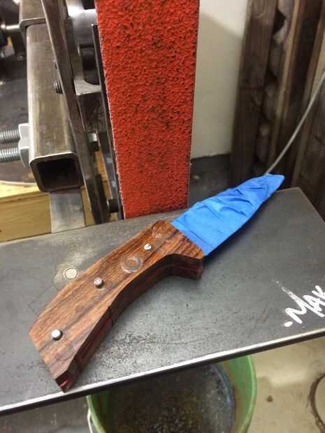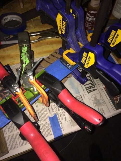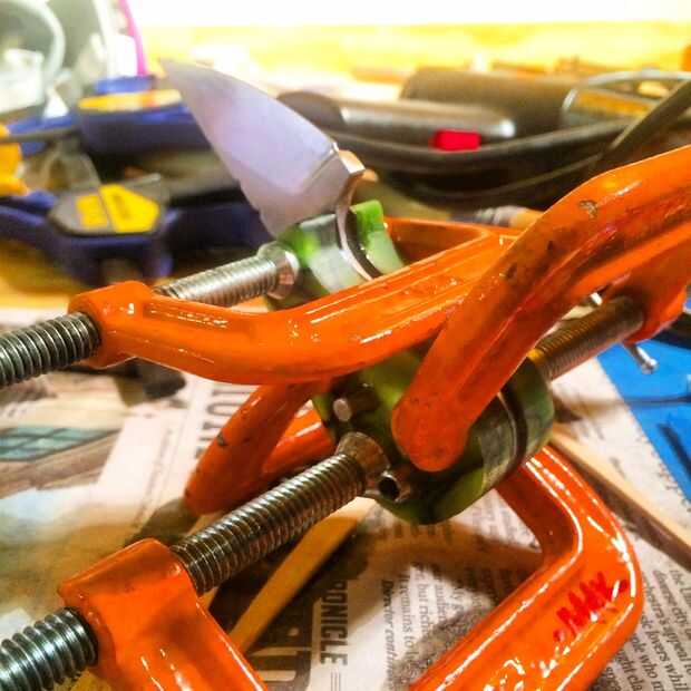 Una vez tuve las asas pegadas para arriba y la forma áspera en, llevó de vuelta a la amoladora y les forma hasta que sienta agradables en la mano.