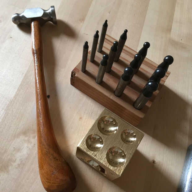 Gota de resina bloque, golpes y un martillo. He utilizado un martillo de repujado (pronunciado re-puce-dice) joyeros