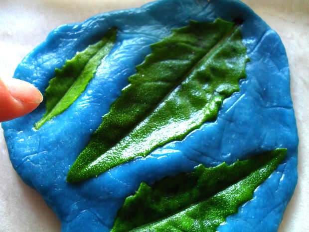 Estirar un pedazo de arcilla que es más grande que el objeto para el casting. Aquí me lió la plastilina sobre papel de hornear y lo piso con un pedazo de plástico.