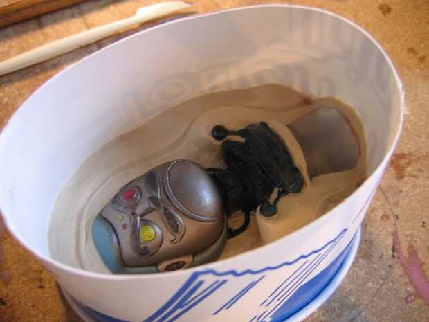 Para piezas más orgánicamente formadas como figuras de acción o prótesis, su molde se encajan de una manera muy específica. La línea de costura que estas formas orgánicas sólo naturalmente bloquea juntos en una posición. Para las piezas más geométricas o mecánicas como discos usb o legos, la costura del molde puede ser casi plana y por lo tanto difícil de alinear o registro. Para asegurarse de que el molde va a la misma manera cada vez, agregar una línea de costura o una llave al molde. Prefiero hacer una zanja de pulgadas de trimestre a lo largo de la frontera de la parte, no sólo encajan bien cada vez sino también evitar que el material se escape hacia fuera cuando estoy echando las piezas finales.