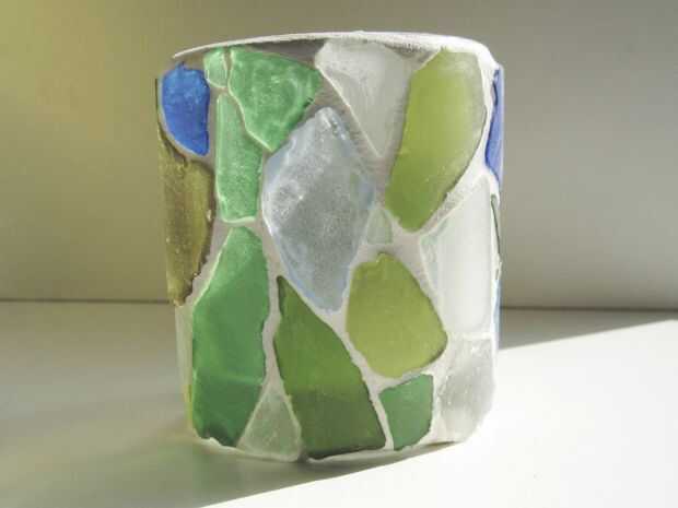 - hacer un mosaico en una hoja de mesa o un florero, rellenar las juntas con lechada y lavar
