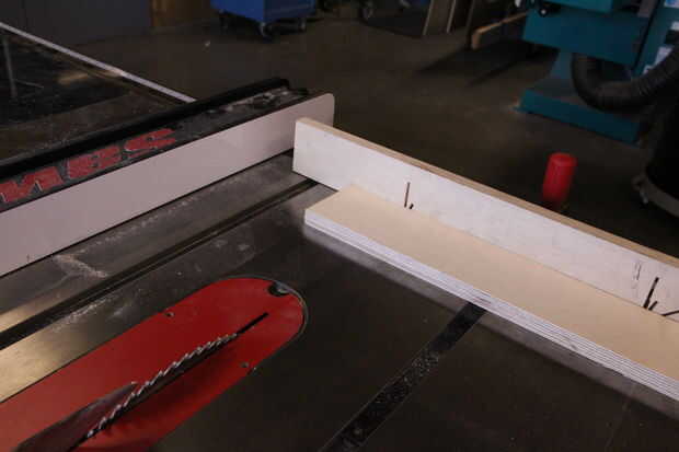Encontré una tira de madera contrachapada de 3/4" a 4" ancho que había sido cortada de una hoja de 4'x 8'. Puse el calibrador de biselado con una sierra de mesa a 20 grados y cortar piezas de aproximadamente igual longitud usando el trineo del crosscut. Volcó las acciones entre cada corte sucesivo a hacer secciones trapezoidales.