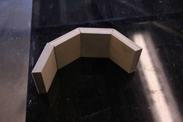 Me aseguré de que mis piezas fueron juntos en un ángulo de 140 grados bastante rematadamente buena, con un enfoque de ensayo y error hasta que el ajuste tenía razón.