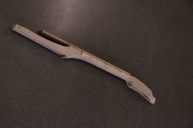 Alisaron la superficie de contacto en el cuello con una lijadora de banda, utilizando una regla para encontrar las brechas y puntos altos.