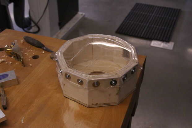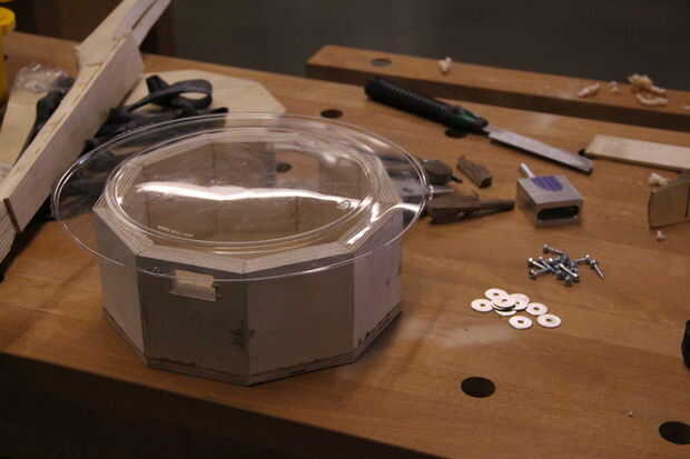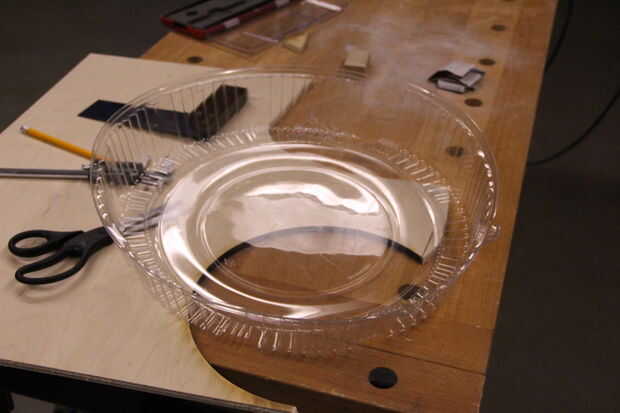 Utilicé una tapa de una bandeja de plástico grandes de alimentos que he encontrado en una papelera de reciclaje.