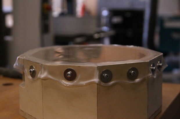 Aprovechado en el tambor refrescado y escuchó el tono aumenta como la 'piel' apretada.