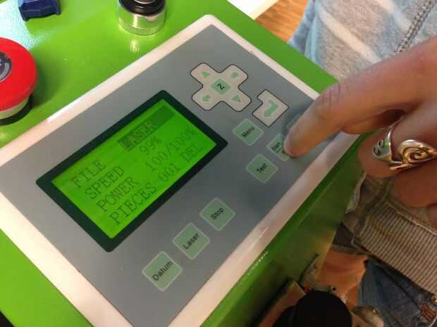 Una volta passato il archivo al ordenador collegato alla macchina, si adattano i parametri, il laser riconosce il foglio di stampa, potrai montado lo sportello di sicurezza e...evita di fissare la luce del laser! :)