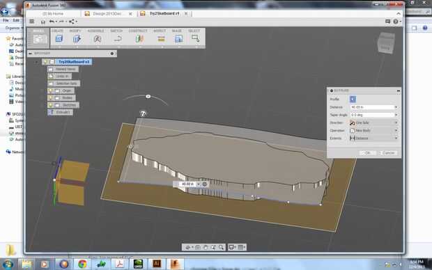 2. Quise utilizar la forma de mi patineta en el molde, así que subí una. SVG diseño en Illustrator en fusión y extrusión del patín de la forma de 5 pulgadas.