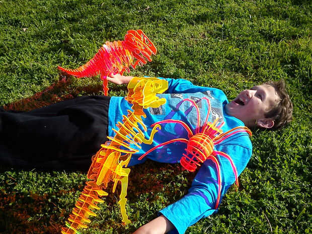 Plantillas aún no requieren un cortador láser usted puede simplemente imprimirlos y es muy útiles para marcar hacia fuera el material que desea cortar, perforar o fold. O tal vez usted ha visto esos esqueleto limpio corte dinosaurios o juguetes pero pensaba yo que no tiene un cortador del laser que no puedo hacer uno, bien puede hacerlo con una impresora y una sierra de contornear. De hecho los dinosaurios y la araña fueron cortadas de acrílico de 3 mm con una sierra de calar por un niño de 12 años de edad.