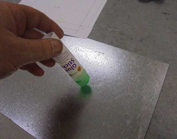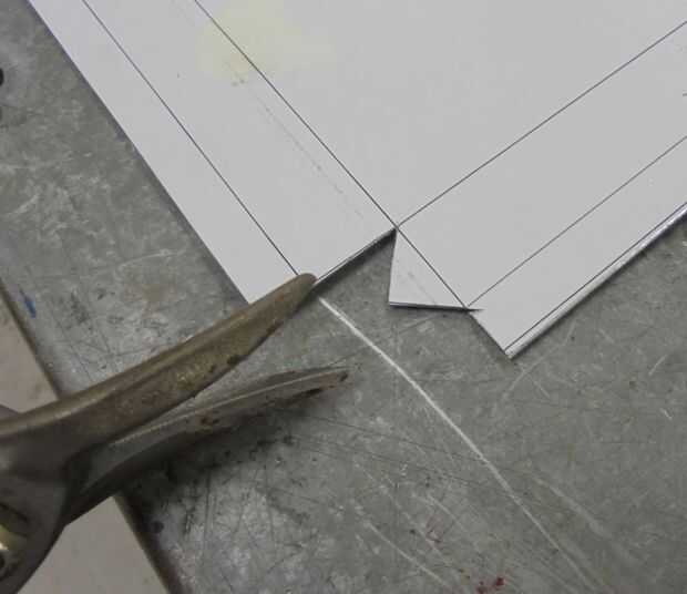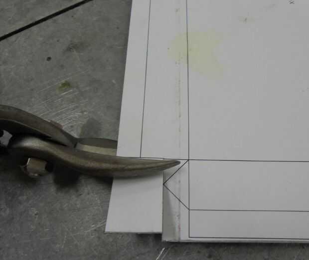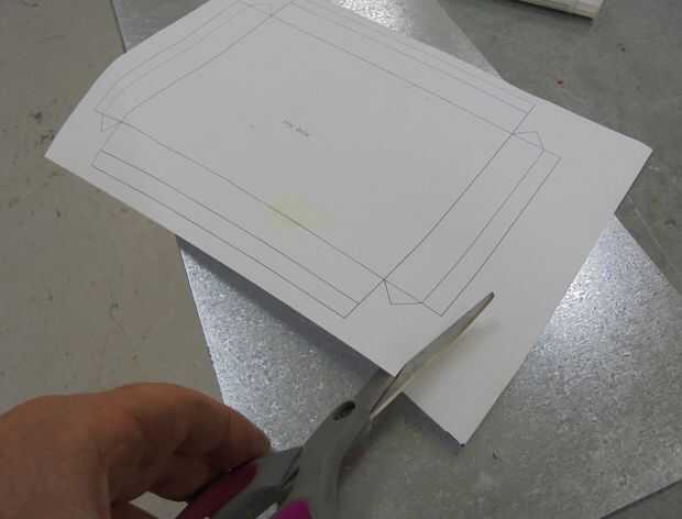 - Primero corte dos borde de la plantilla de papel para que usted puede alinear el borde de la plantilla en el metal de hoja.