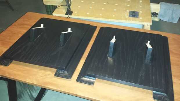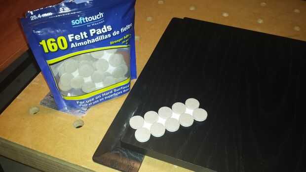 Uso el mismo procedimiento para cortar ranuras en el apoyo a los soportes y conectado a la base con los tornillos después de acabar con ellos en negro. Utiliza fieltros en la parte inferior de la base para proteger el piso. Ahora estamos acabados.