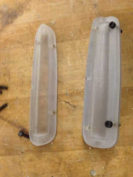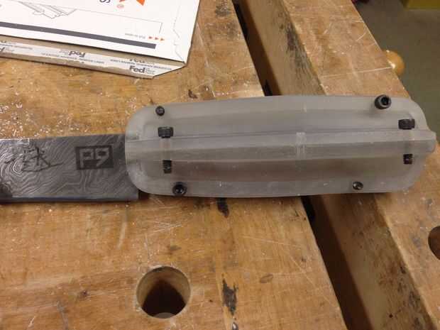 Imprimí el molde en Connex 500 objeto impresora. la precisión es asombrosa y absolutamente ninguna en los bordes. Estaba muy contento con el molde impreso. Moje solo arena dentro de 600 arena todo el camino hasta a grano 2000. Una vez que lo hace. Afile algunos materiales en el mango tener el metal encajan en el molde y también tienen algunas lagunas desde el borde.