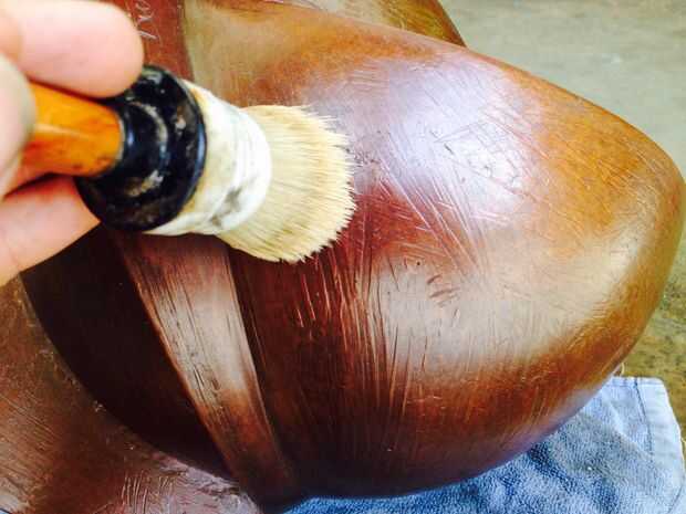 Efectivamente, la pieza continuó aligerar y llegó en el color de la bellota que estábamos buscando. El último paso fue el pedazo de cera. Encerar la escultura protege y conserva la pátina, agregando una agradable profundidad superficial a la pieza. La pátina también se vuelve más transparente después de la depilación al permitir que más de la de bronce para venir a través de la superficie de la escultura. Una ligera capa de cera carnuba basado fue aplicada, deja secar durante 2 minutos y luego pulir hacia fuera con un paño limpio y suave para brillar. Añadir una segunda capa y cera y listo!