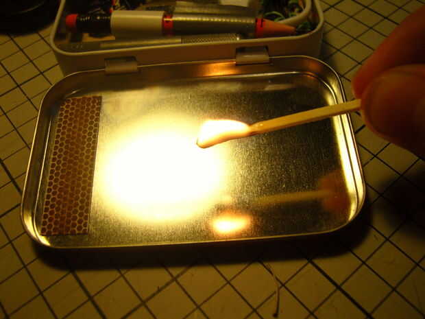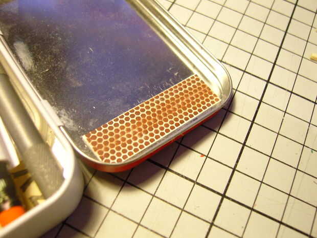 La lata altoids fácilmente tomar a un partido de tamaño normal, pero si tienes las versiones extra largas sólo recortarlo abajo con unas tijeras o un cuchillo.