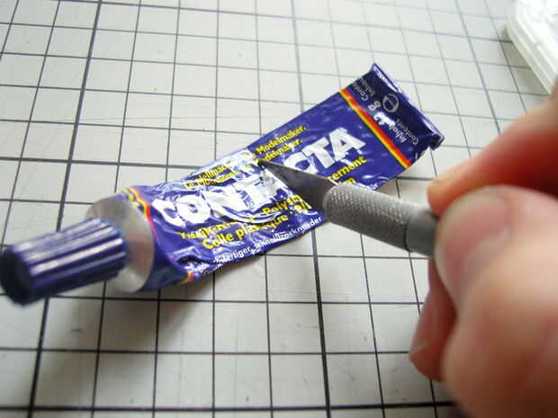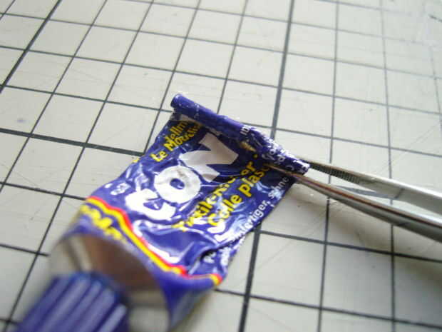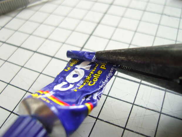 Así que para este paso necesita un medio (o casi) vaciar el tubo de pegamento.