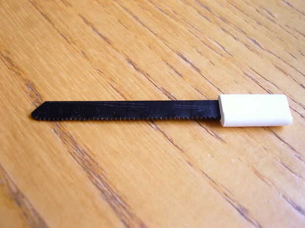 La sierra que utilicé fue una hoja de un taladro de jigsaw. Son realmente pequeñas hojas que tienen pequeños teeeth que es ideal para pequeños trabajos.