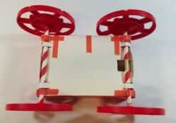 Los rodamientos de paja en lugar de cinta. Asegúrese de que la paja se extiende más allá de la parte exterior de la caja, para que las ruedas no rocen con la caja. Deslice las ruedas rojo sobre los ejes de columnas como se muestra.