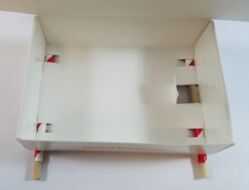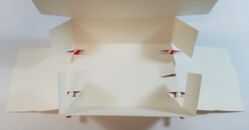 Doblar la parte delantera y la parte posterior de la caja. Doblar las aletas pequeñas que son 90 grados a las paredes anterior y posterior. Doblar las aletas laterales en la parte superior de las aletas pequeñas y luego lo acomode en la parte inferior de la caja.
