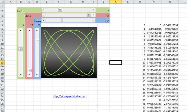 Aquí utilicé la fórmula básica y gráfico para la visualización del patrón. Y para los cursores de Visual Basic estándar objeto de slider.