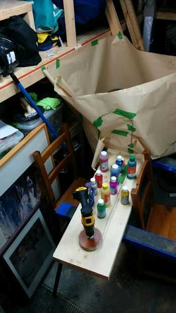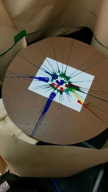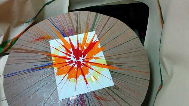 Una de las divertidas cosas que había visto alrededor era giratoria tipo algo donde podría poner una hoja de papel o camiseta, arrojar alguna pintura y comenzar a girar la mesa. Centrífuga fuerza lanza entonces hacia afuera de la pintura del centro, y una vez que dejas el giro tienes una explosión de la pintura abstracta muy interesante en su medio :)