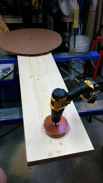 El concepto general de este dispositivo es que tiene una gran plataforma con una rueda por debajo de ella, y esto se une a una tabla fija con un tornillo que permite la rueda + plataforma giren libremente. Un par de pies de distancia tiene una segunda rueda unida a la Junta Directiva de la misma manera y hay una longitud de cuerda que conecta ambas ruedas (que tienen un surco de "V" a lo largo de su circunferencia para sostener la cuerda). El perno que sostiene la rueda solitaria se extiende hacia arriba sobre una pulgada más o menos, y un taladro se une a esa extensión. Cuando se enciende el taladro, la vuelta de la rueda, tira de la cuerda, hace que la otra vuelta de rueda y nada a la izquierda encima de la plataforma salpica hacia fuera. ¡ Simple!