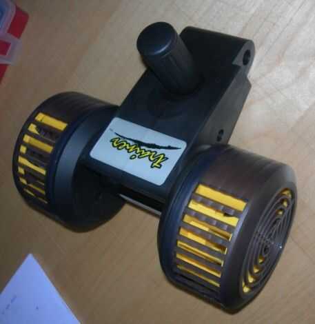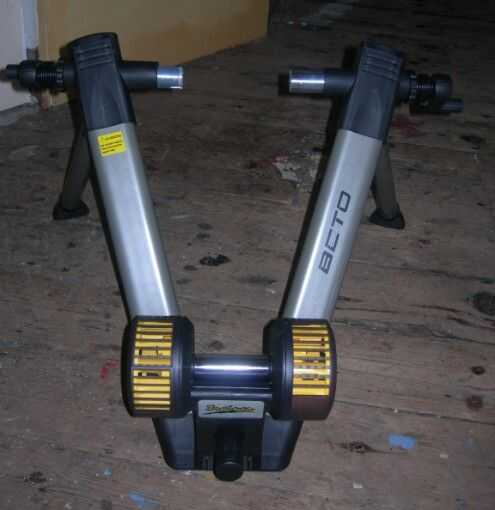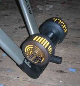 Un rodillo empuja a algunos fans de plástico amarillo contra el disco. Esto proporciona la resistencia para el 'entrenamiento' pero no es necesario aquí.