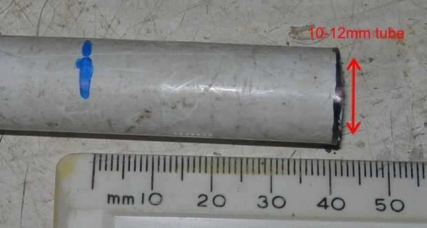 El tubo de acoplamiento debe colocarse a ambos los árboles. Para hacer esto, perfore un pequeño orificio en el tubo y el eje. Utiliza un agujero de 2mm. Un pedazo corto de alambre de 2mm galvanizado empujó a través del agujero y doblado en cada extremo. Podría utilizarse un pasador o perno. En la versión final una pieza adicional de encogimiento de calor de gran diámetro fue utilizada para sostener el alambre galvanizado.