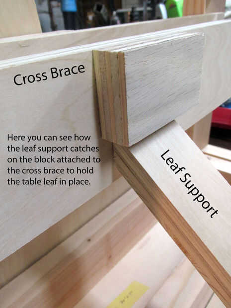 Aunque las hojas se unen ahora, no hay nada para mantenerlos en su lugar, por lo que en este paso se va añadiendo apoya la hoja de la tabla y la cruz que se unen a los apoyos.