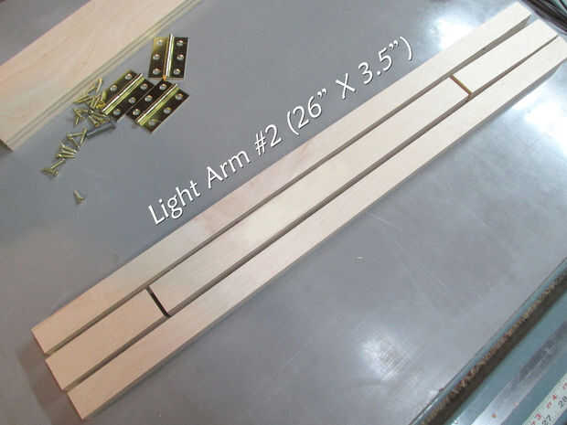- El primer paso en la construcción de la luz es cortar aparte luz brazo #2. Comienza por cortar una tira ancha de 1" de cada uno de los lados largos para que tengas dos tiras largas de 1" X 26". Esto le dejará con una sección central que es cerca de 1.5" de ancho y 26" de largo.