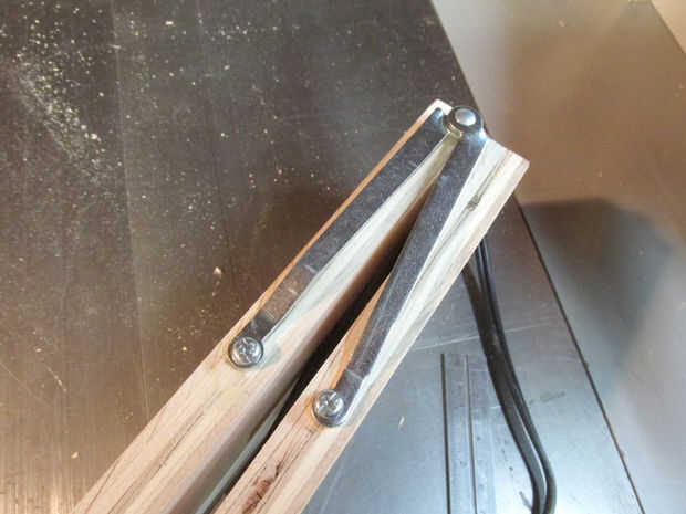 - Ahora uso una de 2" de la bisagra para unir el extremo del brazo ligero tres que está rebajado hasta el final de la luz brazo #2 que no está pegado al brazo de la luz #1. Sugerencia: Asegúrese que el cable es en la ranura en el brazo de la luz #3 antes de atornillar la bisagra en su lugar, de lo contrario que usted tendrá que quitar la bisagra para instalar el cable.