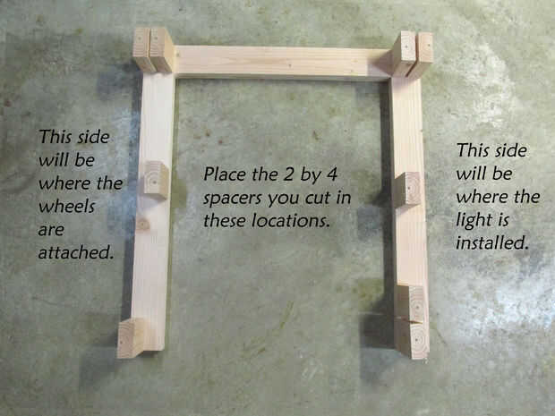 Con la frente y piezas del marco trasero de la estación de marcador construido, el siguiente paso es a ponerlos juntos. para hacer este uso el 4" largo 2 X 4 espaciadores que se cortaban en el paso 4. El objetivo aquí es hacer el ancho de la estación de fabricante marco exactamente 7" para que la tapa de tabla 7" se ajusta perfectamente en la parte superior del marco, (esto significa que usted tenga que ajustar la longitud de tus separadores ligeramente dependiendo de cosas como el grueso de la 2 X 4 que está utilizando).