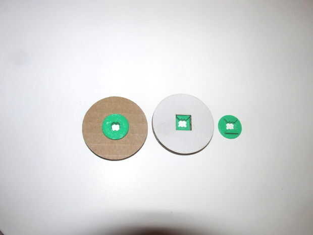 Hay ocho partes de cubo de rueda en este kit. Puede decir la diferencia entre ejes de rueda y cojinetes de rueda mirando la superficie del agujero del centro. Los cubos tienen cuatro protuberancias que apuntan hacia adentro mientras que los rodamientos son lisos. Asegúrese de que usted utilice los ejes en este paso y no rodamientos o su coche no funciona correctamente.