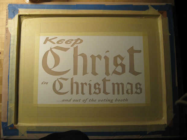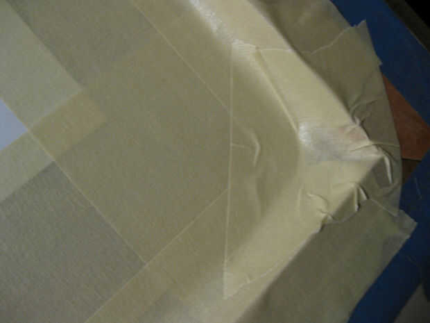Cuando el vinilo era todo pegado abajo de la pantalla utiliza cinta adhesiva para bloquear alrededor de la imagen. Esto evitará que la tinta de estropear la camiseta. Graba toda la pantalla expuesta alrededor de los bordes hasta que el único lugar de que la tinta puede fluir a través de la pantalla expuesta de la imagen.