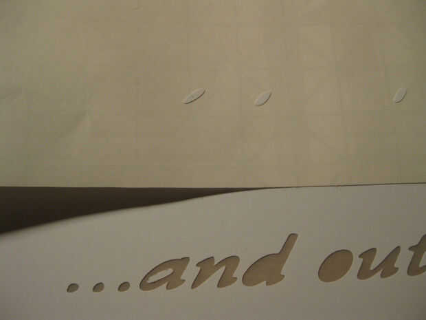 Para transferir el vinilo a la pantalla simplemente grabó un borde del sándwich transferencia de papel de forro de vinilo de papel a la pantalla a lo largo de un borde. Había doblado sobre el papel de transferencia del espaciador hacia abajo y me empezó a pelar el papel del forro. Dobla sobre para que el vinilo pegajoso recién expuesto entra en contacto con la pantalla. Suavemente había pelado forro papel mientras alisar el vinilo con la tarjeta de regalo. Pequeñas piezas de vinilo pueden permanecer en el papel de transferencia. Estos pueden suavemente remover con la espátula y colocar a mano.