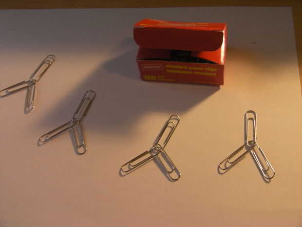 Para crear esta red inicial, empezar por tomar tres clips y los encadenamiento de todos juntos para que formar una Y.  Continuar con este paso hasta que tenga al menos seis diferentes Ys.