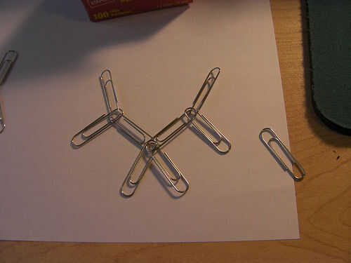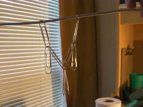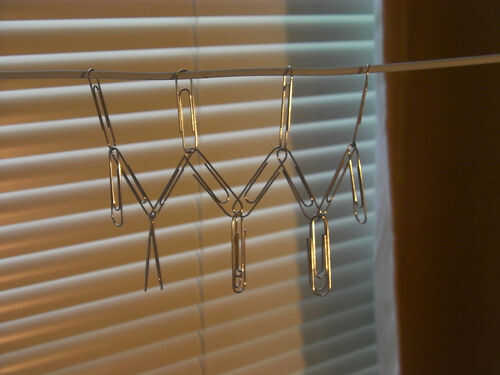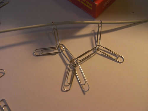 con patas de dos colgantes en el centro. Asegúrese de que todos los clips están interconectados entre sí.