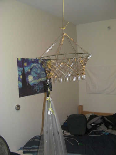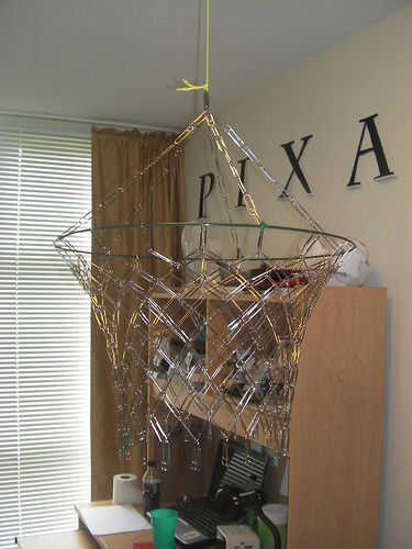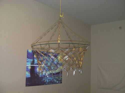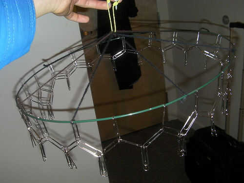 Básicamente, empezar tomando el anillo más pequeño del metal en el marco de la guirnalda y empezar a conectar filamentos de estructura de enrejado clip interconectados con él. Cuántos usted decide colgar dependerá de la superficie de los anillos posteriores, es decir, cómo es grande los anillos próximos será de acuerdo a la primera. Cometí el error de usar sólo veinte colgante puntos del clip, que fue descubierto para ser muy pequeño y terminó encima de tener que pagar más tarde.