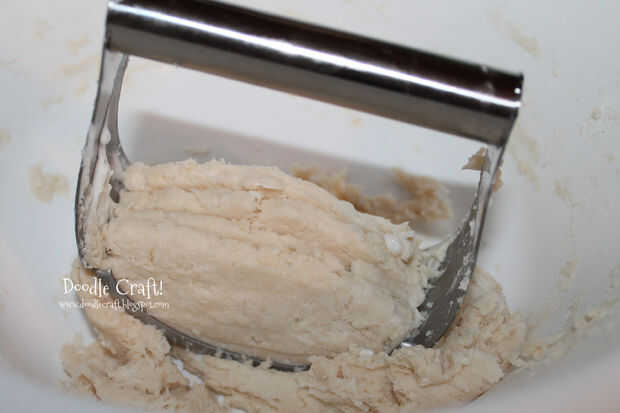 Corte los ingredientes junto con la batidora de repostería o tenedor.