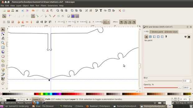 Para generar el código g usé Deskproto, porque eso es parte de la cadena de herramientas que utilizamos en protospace. Cualquier otro generador de código de g probablemente funciona igual de bien. Una vez en la etapa de gcode: Asegúrese de taladrar los agujeros e interiores cortan primero. También asegúrese de que tener dos o tres agujeros en cada pieza separada que se puede utilizar para fijar en el router.