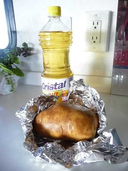 - Una grande, 12-14 oz sin pelar patata Russet - fregada, enjuagarse y secarse. (El rendimiento es de 2 porciones)