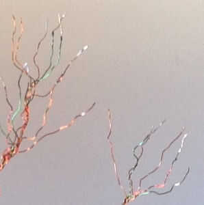 Aquí es donde asume su ser artístico. Mover su atención a la parte superior de su árbol y empezar a desenroscar los cables en ramas en todo lo que le parezca. He visto estos en forma de pinos, palmeras, árboles de fantasma, etc.. Tómese su tiempo con esto y moldearla a su gusto. Hacerlos con los amigos, beber café y chismes mientras desenrosca los cables. Una vez que esté satisfecho con la forma de su árbol, puede decidir a dónde y cuántos LEDs para añadir. En mi árbol, separó los cables en ramas de 6 hilos, pensando en un LED por rama. Identificar dos cables cercanos - uno rojo y uno verde - para cada LED.
