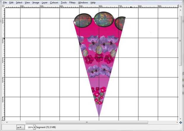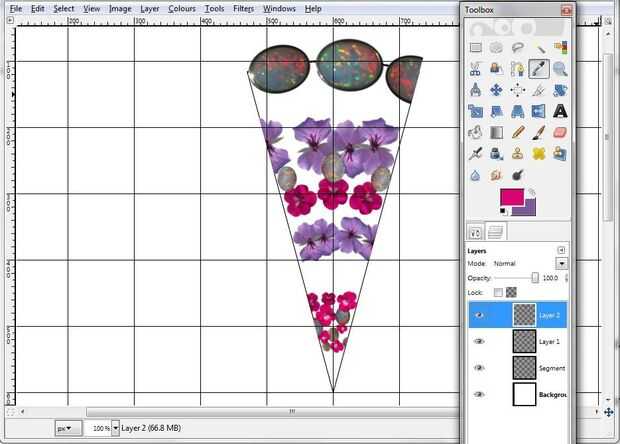 Desactivar la visibilidad de las capas 1 y 2 y funcionan en la capa de segmento. Utilice la herramienta de cubo para llenar el segmento con el mismo color que el contorno del segmento - negro en este caso.
