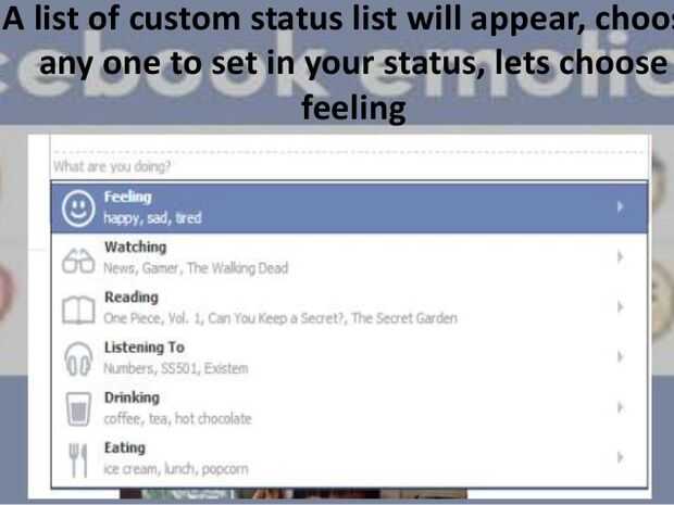 Paso 4: Luego aparecerá una lista de lista de estado personalizado, elegir establece en tu situación y la sensación